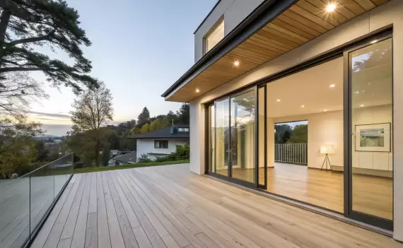 При безрамном остеклении открывается отличный обзор вокруг. А если вы не хотите, чтобы кто-то заглядывал к вам, можно затонировать стекло. Способов открывания створок безрамного остекления дома существует несколько: