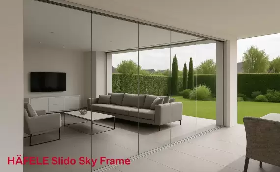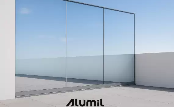 Это полное отсутствие рам в конструкции. Стекло крепится сверху и/или снизу специальным образом и перемещается по направляющей.