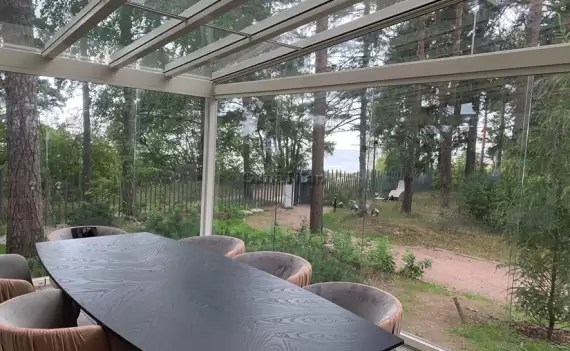 Безрамное остекление веранд и террас не просто так пользуется популярностью. У данного типа окон есть много преимуществ: