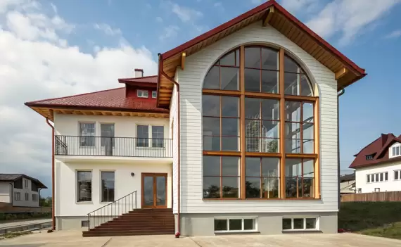 Фасад – это «лицо» любого частного дома и коттеджа. Именно поэтому он требует особого подхода к застеклению. Такие окна должны быть не только красивыми, но и надёжными, удобными, безопасными. С появлением новых возможностей в производстве окон стала активной и услуга фасадного остекления коттеджей и загородных домов.