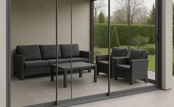 *Холодное раздвижное остекление — оптимальный выбор для сезонного использования веранды или террасы. Обеспечивает защиту от ветра и осадков при лёгкости конструкции.